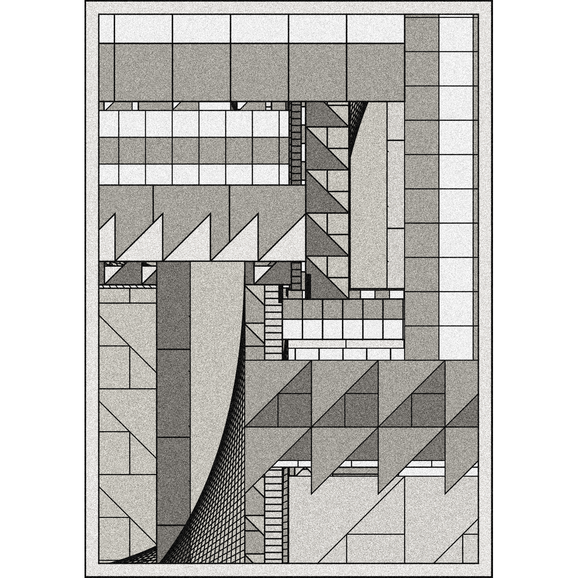 The first level is the golden composition with rectangles and the other levels are defragmented and increase in complexity, allowing more variety in the collection.